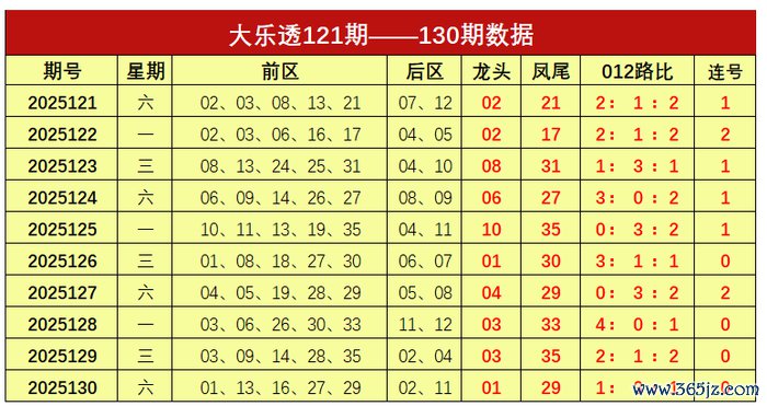 大乐透第2025130期出奖号统计:前区01、13、16、27、29,后区02、11。龙头01,凤尾29,012路比为1:3:1,未开出连号。